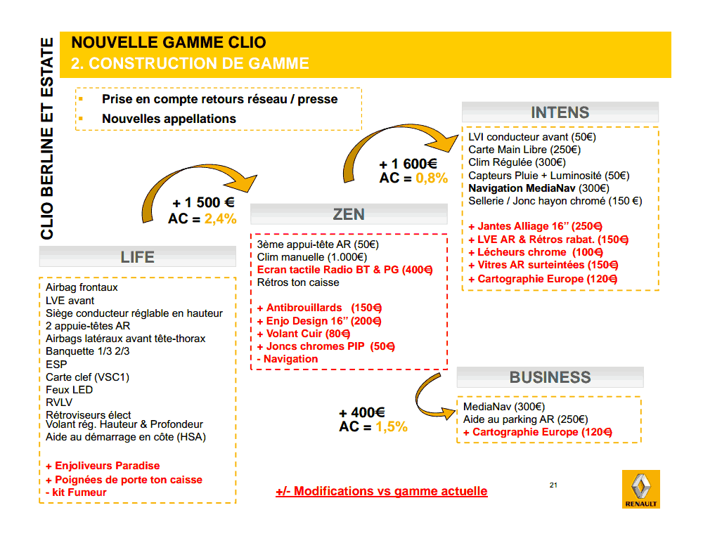 - Redéfinir son offre en misant sur une stratégie marketing fraîche, et rendre chaque niveau de finition plus distinctif avec un équipement revisité.